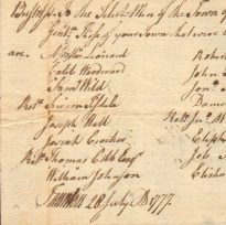 "To the Selectmen of the Town of Taunton in Ye County of Bristol Gentleman These were The Persons that were Licensed at September Court. Samuel Fales Clerk Signs On Verso Taunton, September 11th 1777 We Approve of The Within Persons Except Samuel Wild who had Bad Order in His Home."
