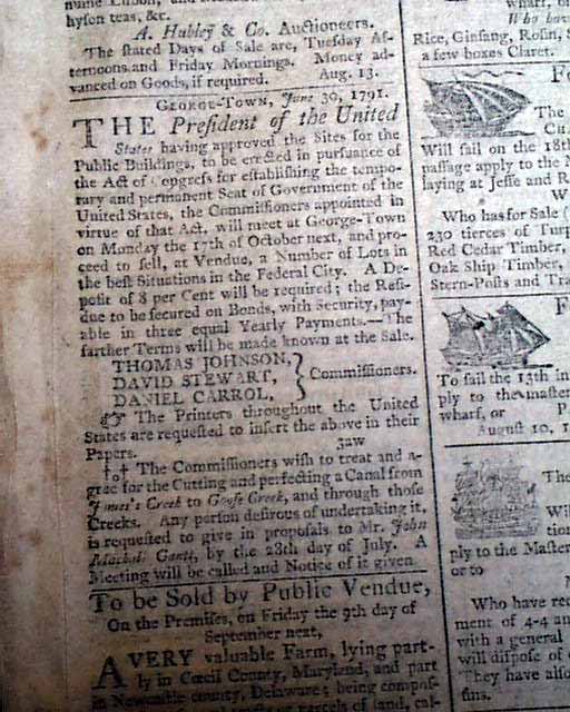 1791 Dunlap’s American Daily Advertiser: Selling building lots in Washington DC